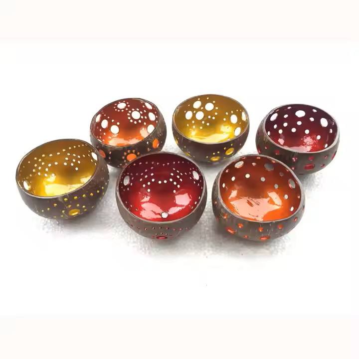 Handcrafted Coconut Shell Christmas Candle Holder Decorative Tealight Stand Modern Eco Friendly Unique Handmade Gift
