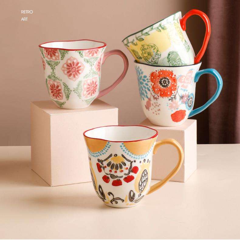 Handcrafted Colorful Porcelain Coffee Mug Set Vintage Design Milk Cup Factory Wholesale Customized Logo Office Cup Gift