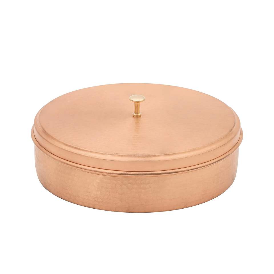 Handcrafted Copper Spice Box with Spoon Hammered Design Traditional Kitchen Masala Dabba