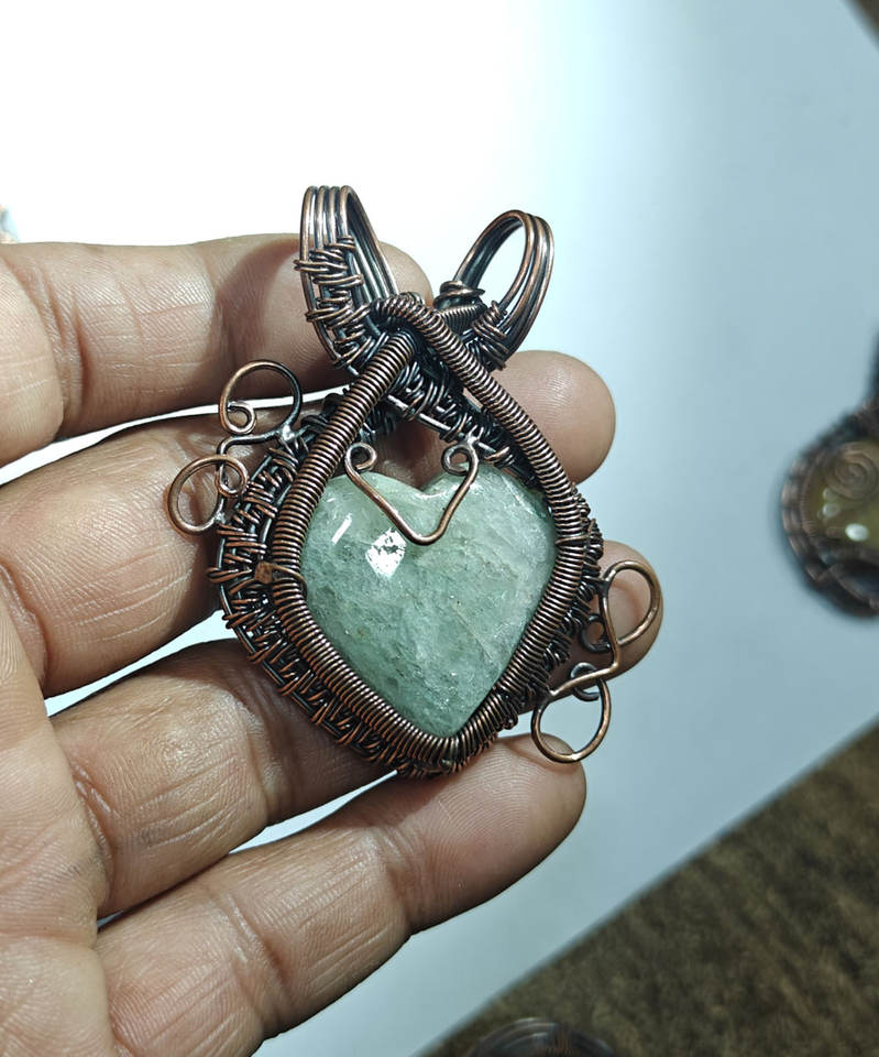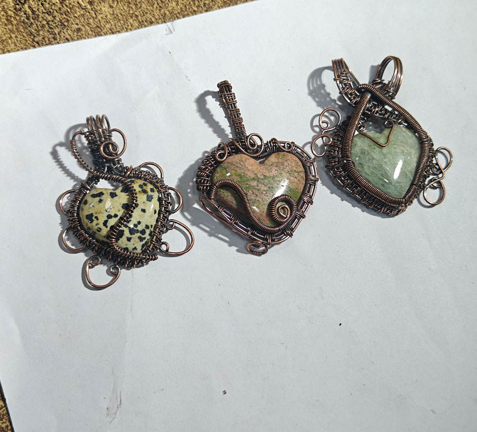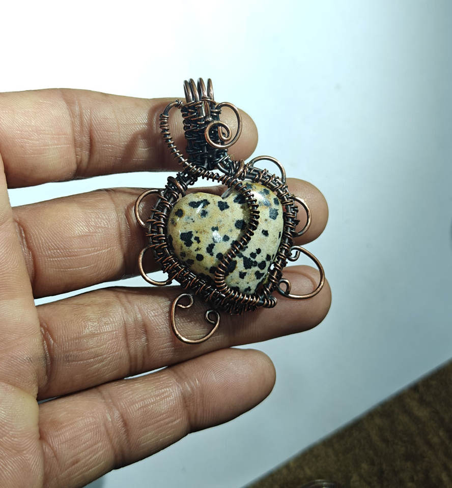 Handcrafted Copper Wire Wrapped Unakite Heart Pendant Healing Stone Necklace for Women
