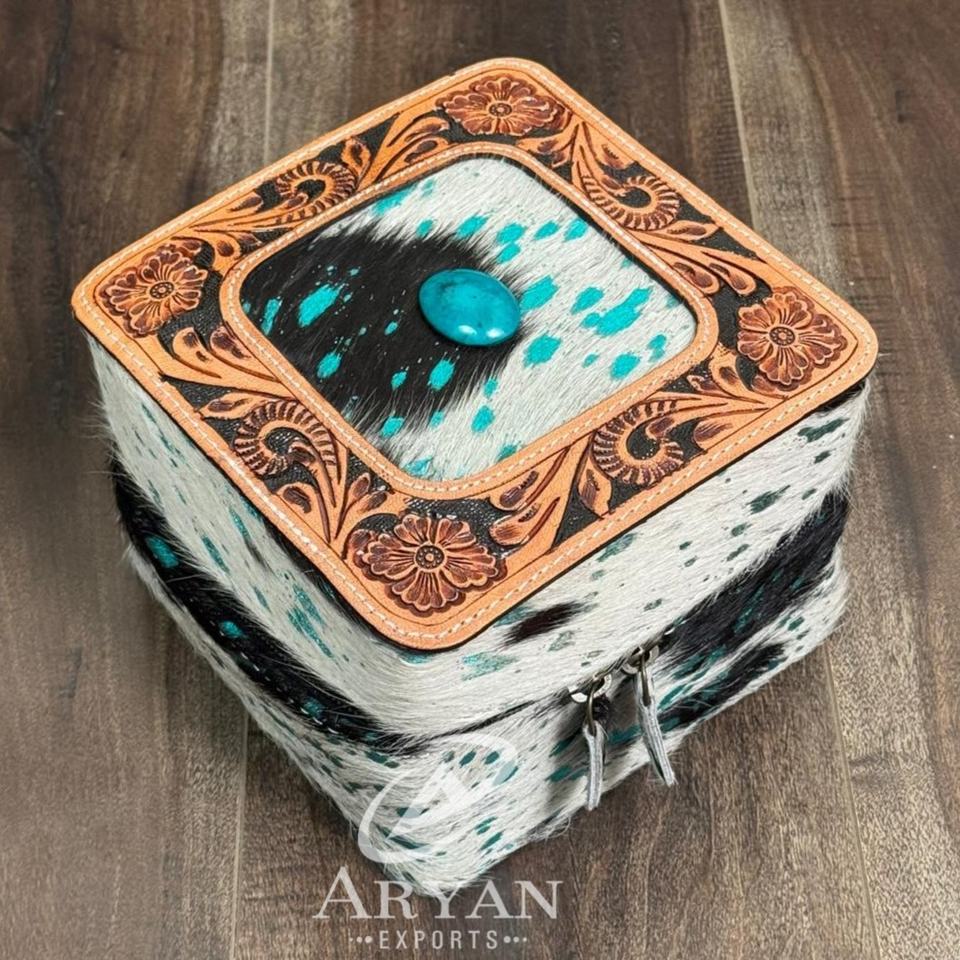 Product name:Hand Tooled Cowhide Leather Square Jewelry Case