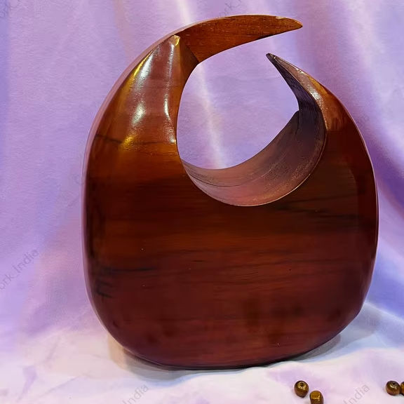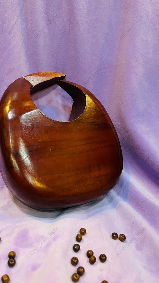Handcrafted Crescent Cutout Wooden Clutch Bag for Women Designer Evening Party Wedding Statement Sculptural Purse