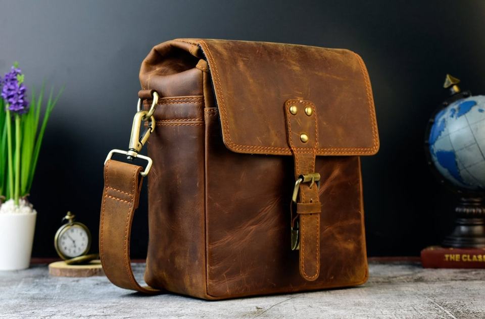 Handcrafted Crunch Leather Camera Storage Bag Travel Cross-body Carry Bag Camera Portable Tool, Camera Protect Bag