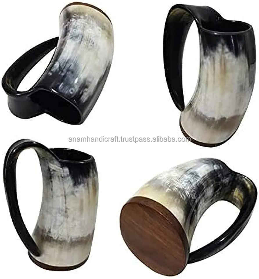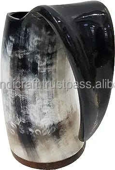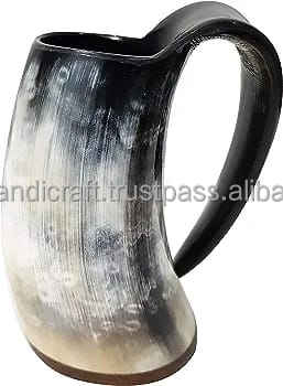 Handcrafted Customised Viking Carving Ceramic Drinking Horn Mug Highly Polished Natural Horn India for Business Gifts-Wine Beer