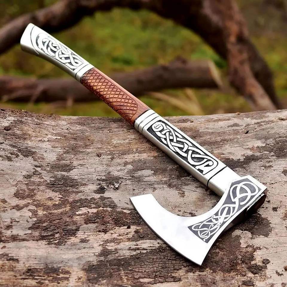 Handcrafted DIY Viking Axe High-Carbon Steel Forged Lightweight Wood Handle Multifunctional Unleash Spirit Ancient Norse Garden