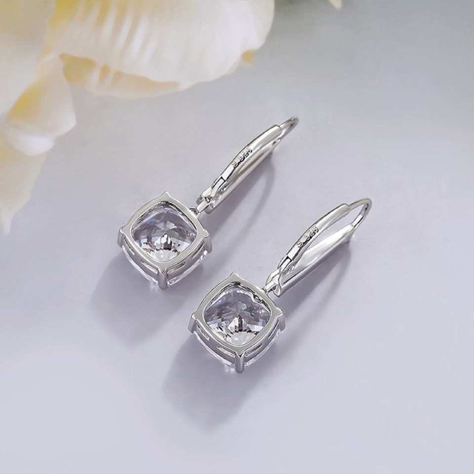 Handcrafted Dangly Drop Charms Earrings with Cushion Cut Moissanite Diamond Elegant 925 Silver Jewelry Gift for Her