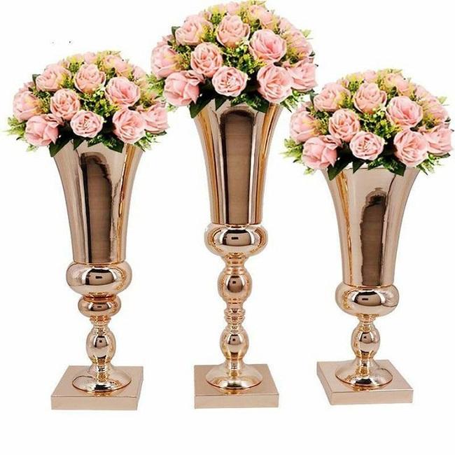 Handcrafted Gold-Plated Metal Tabletop Vase Elegant Decorative Piece for Weddings and Home Decor