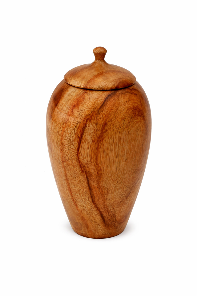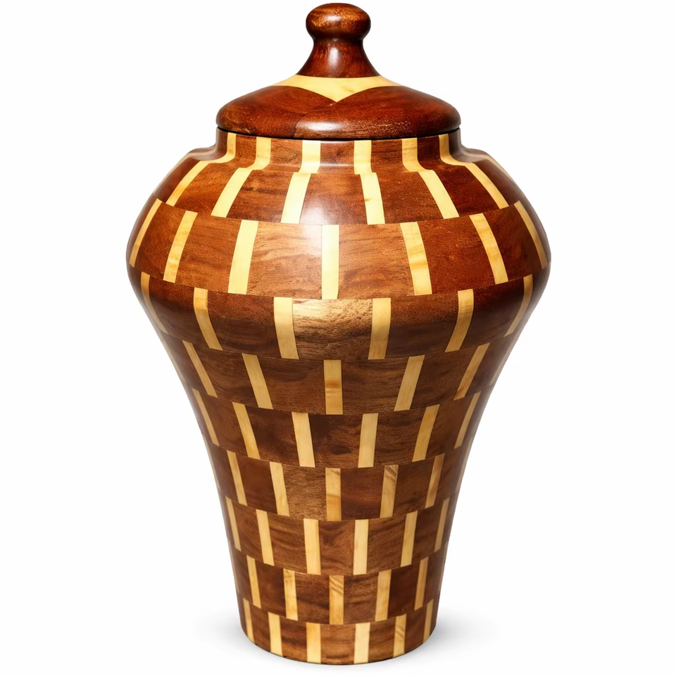 Handcrafted Decorative Wooden Cremation Urn With Checker Pattern Inlay Design Smooth Polished Finish