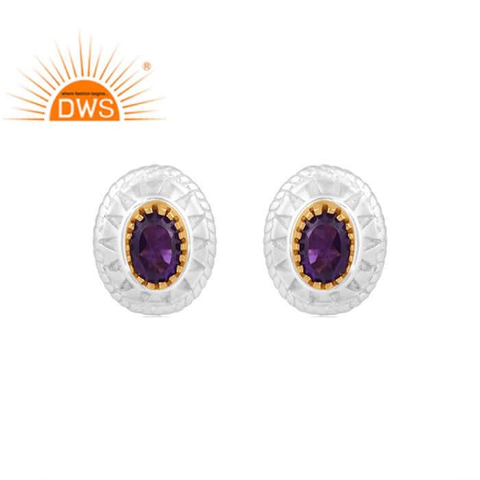 Handcrafted Design Fine Sterling Silver Natural Amethyst Gemstone Stud Earring Custom Jewelry For Women Gift For Her