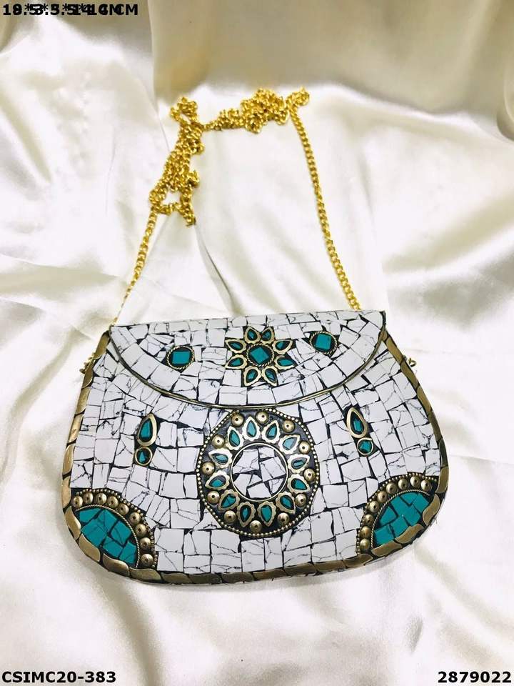 Handcrafted Designer Evening Metal Mosaic Clutch Bag for Ladies Handmade Metal Mosaic Sling Bag