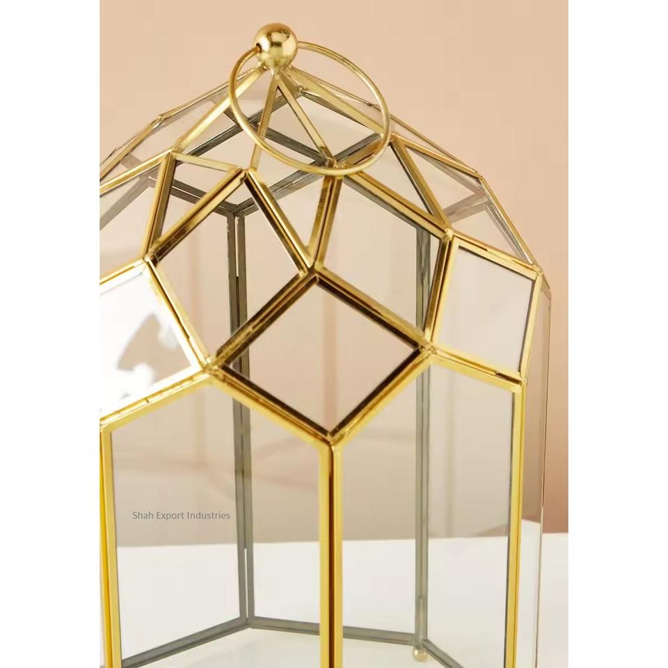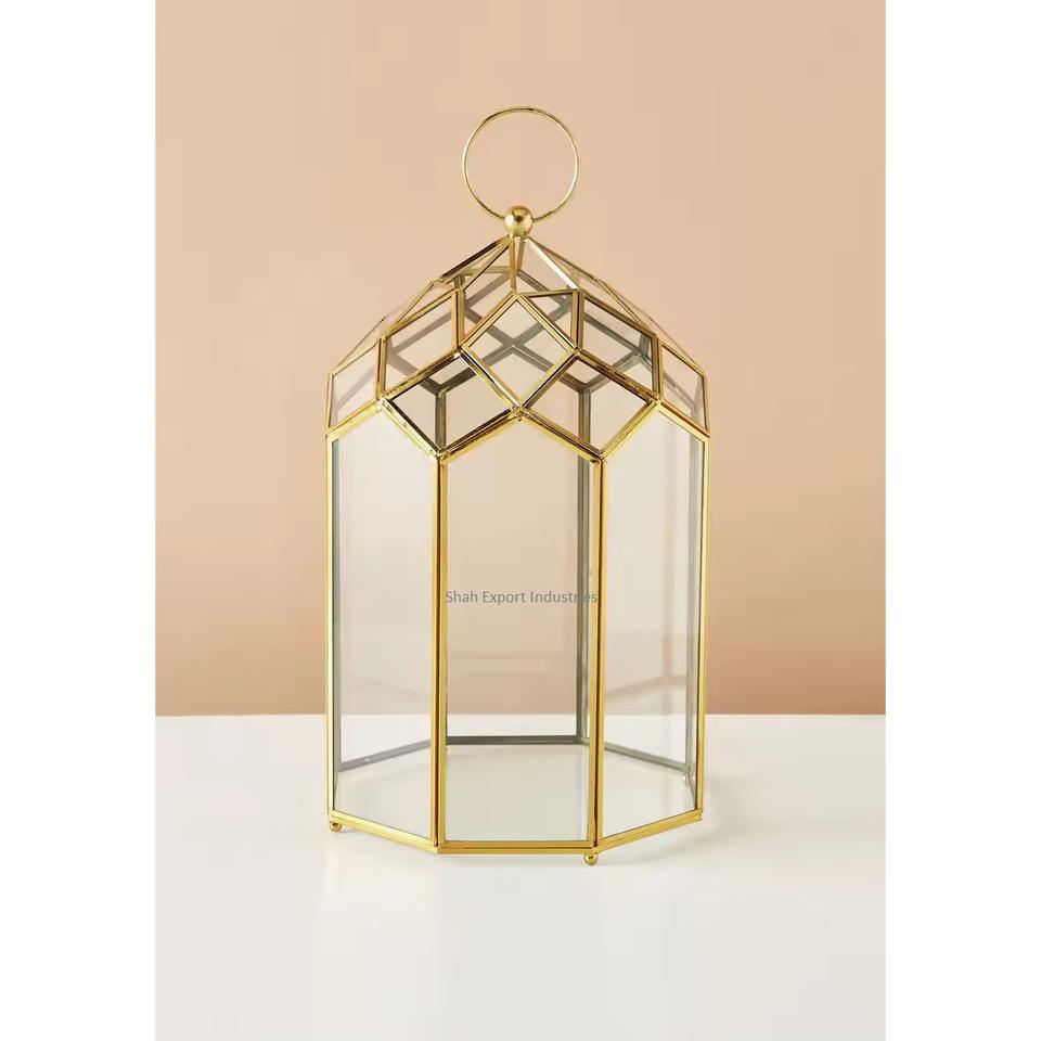 Handcrafted Designer Glass Hurricanes Candle Lanterns Brass Gold Framed for Home and Events Table Decoration Lantern