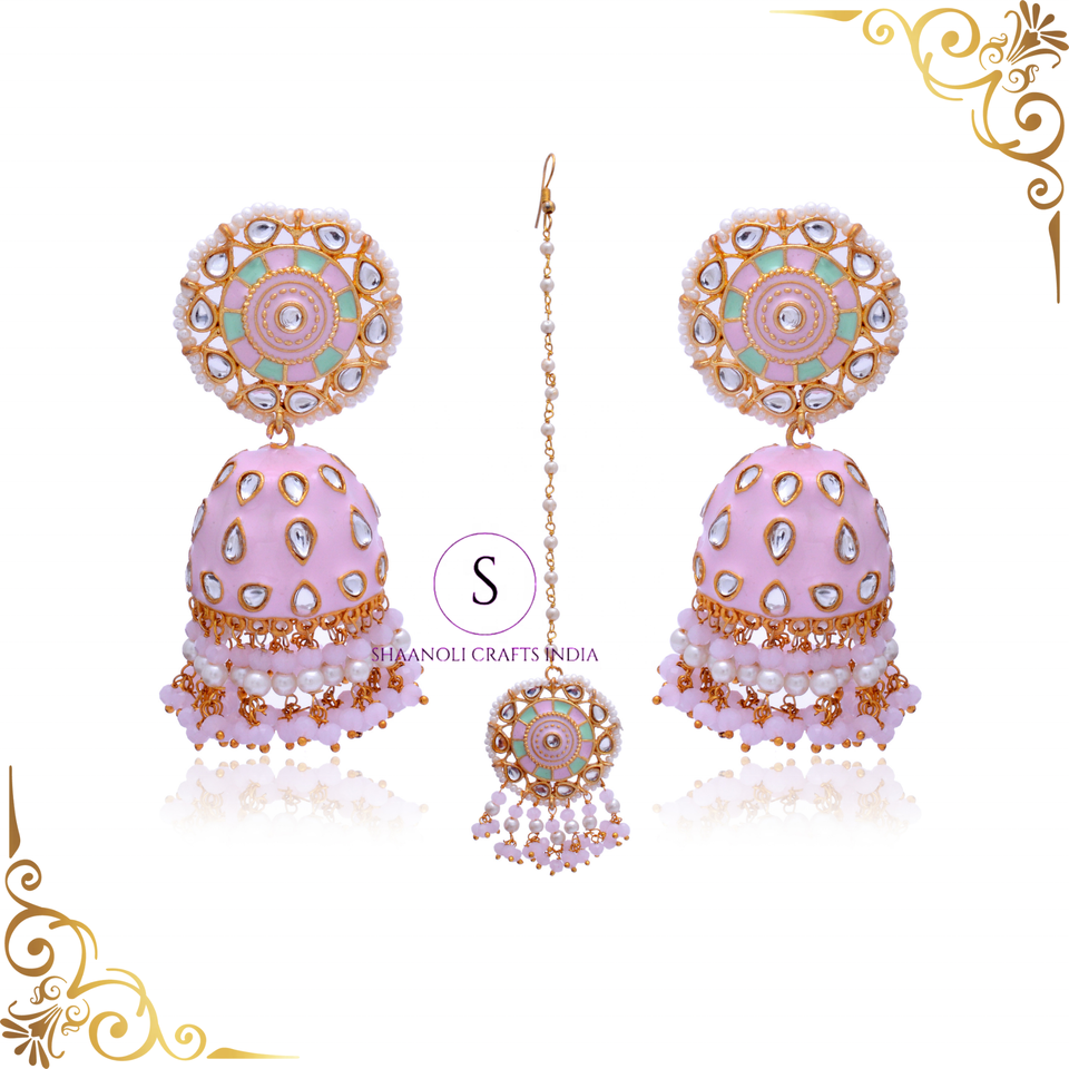 Keyword:wedding jewelry handpainted Earrings and tikka