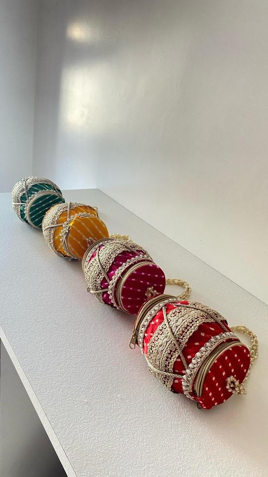 Handcrafted Dholak Potli Bags for Wedding Favors Double-Sided Zipper Gift Bags for Haldi, Mehendi, Bridal Showers & Festivals