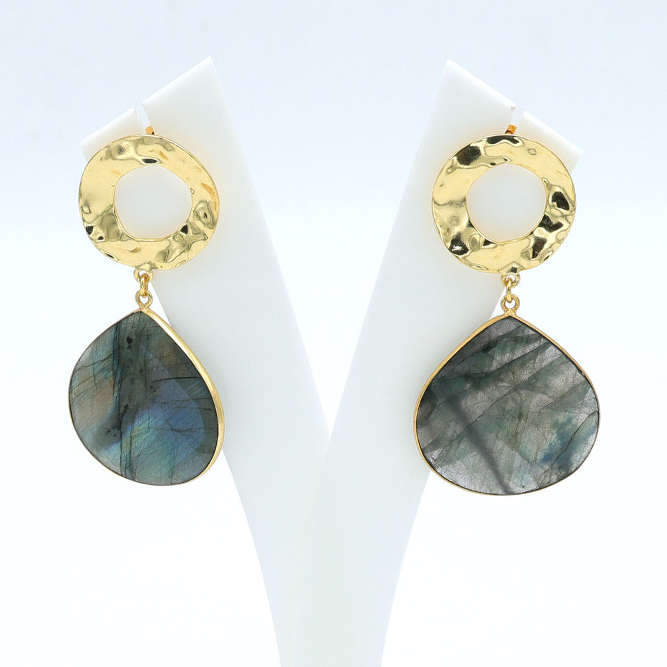 Handcrafted Dua 18K Gold Plated Copper Alloy Brass Labradorite Heart Drop Earrings | Trendy Women Wedding Statement | Jaipur