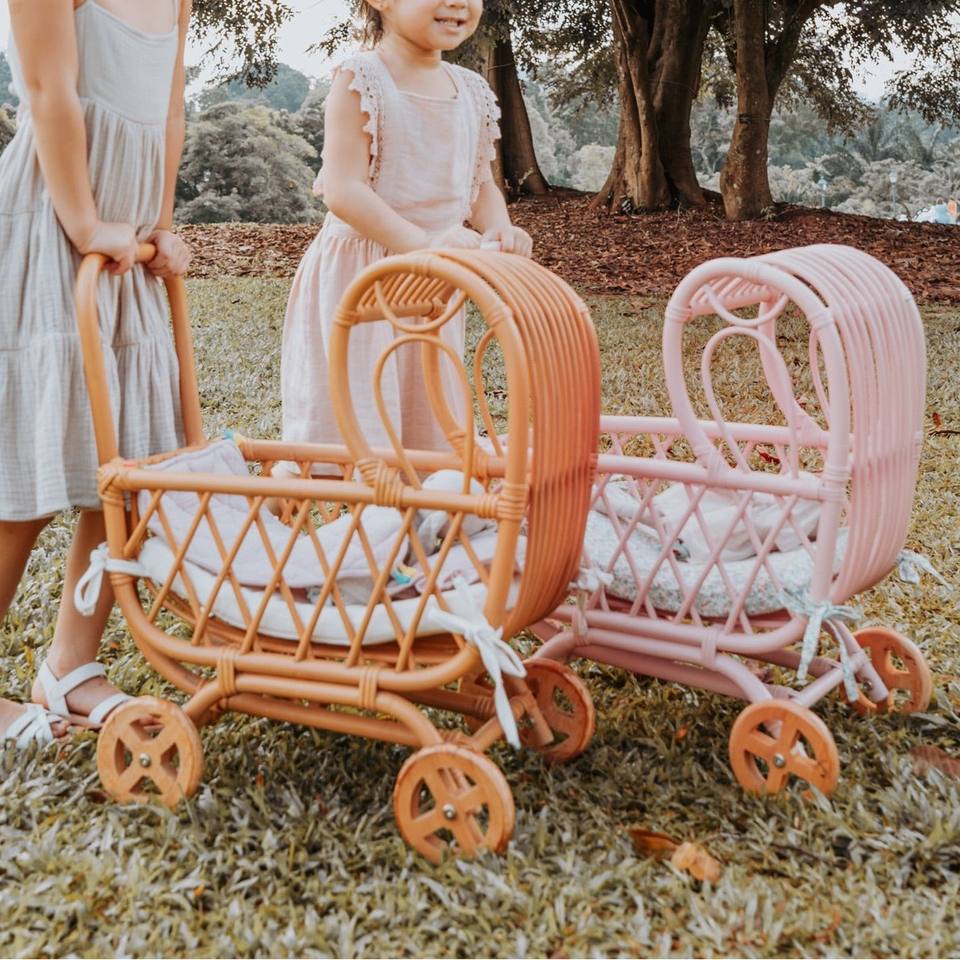 Handcrafted Eco Friendly Baby Stroller Rattan Naturall Doll Carriage Pram Strollers Best Selling Dolls Accessories Toys for Kids