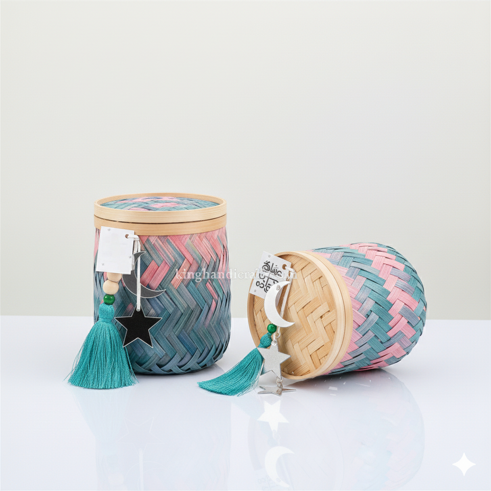 Handcrafted Eco-Friendly Circle Storage Basket for Ramadan Eid Customizable Decorative Packaging Holiday Souvenirs Multi-Purpose