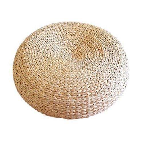Handcrafted Eco Friendly Padded Knitted Straw Flat Seat Cushion,Round Pouf Tatami Floor Pillow Sitting Cushion,Tatami Cushion