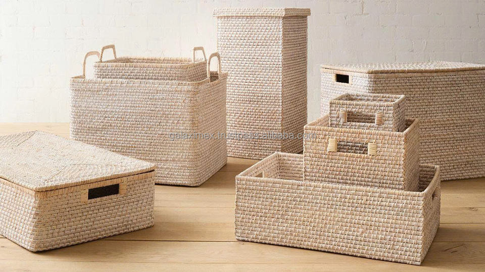 Handcrafted Eco-Friendly Rattan Storage Baskets for Bathroom Living Room & Laundry-Multifunction Design with 5-Layer Storage