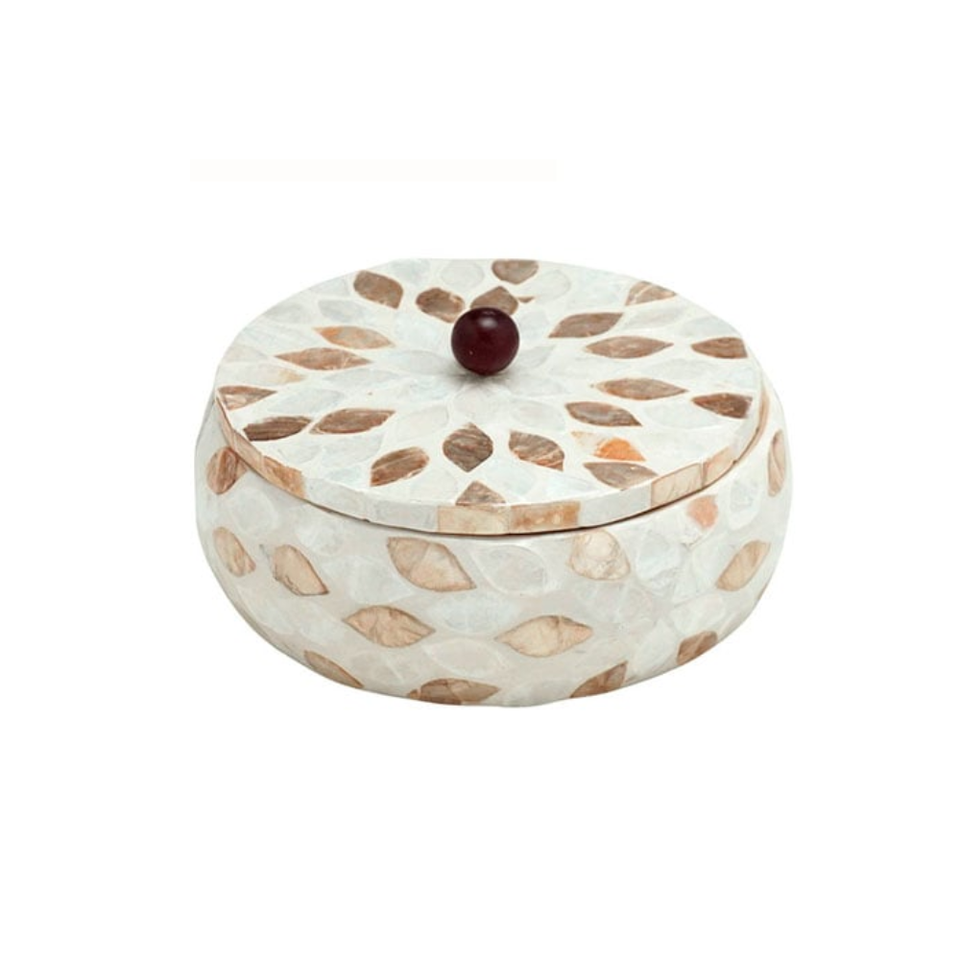 Mother of Pearl inlay Bamboo Round Storage Boxes Bins