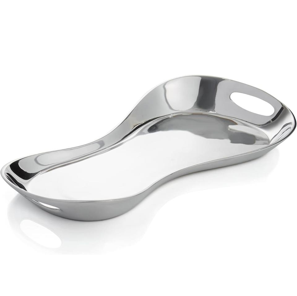 Handcrafted Elegant Silver Metal Platter Bowl Set Unique Floral Accent Modern Centerpiece Premium Handmade Decorative Serving
