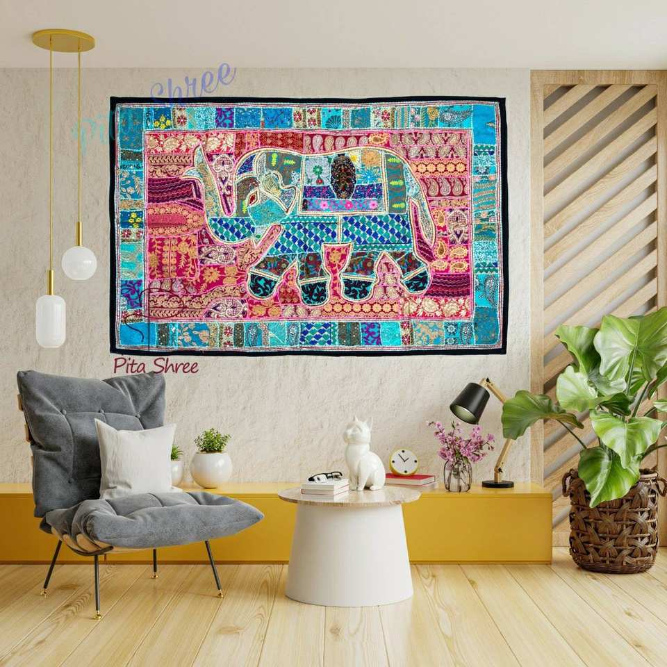 Handcrafted Elephant Patchwork Wall Hanging 40x60 inch Cotton Embroidered Tapestry Vibrant Home Decor Wall Art