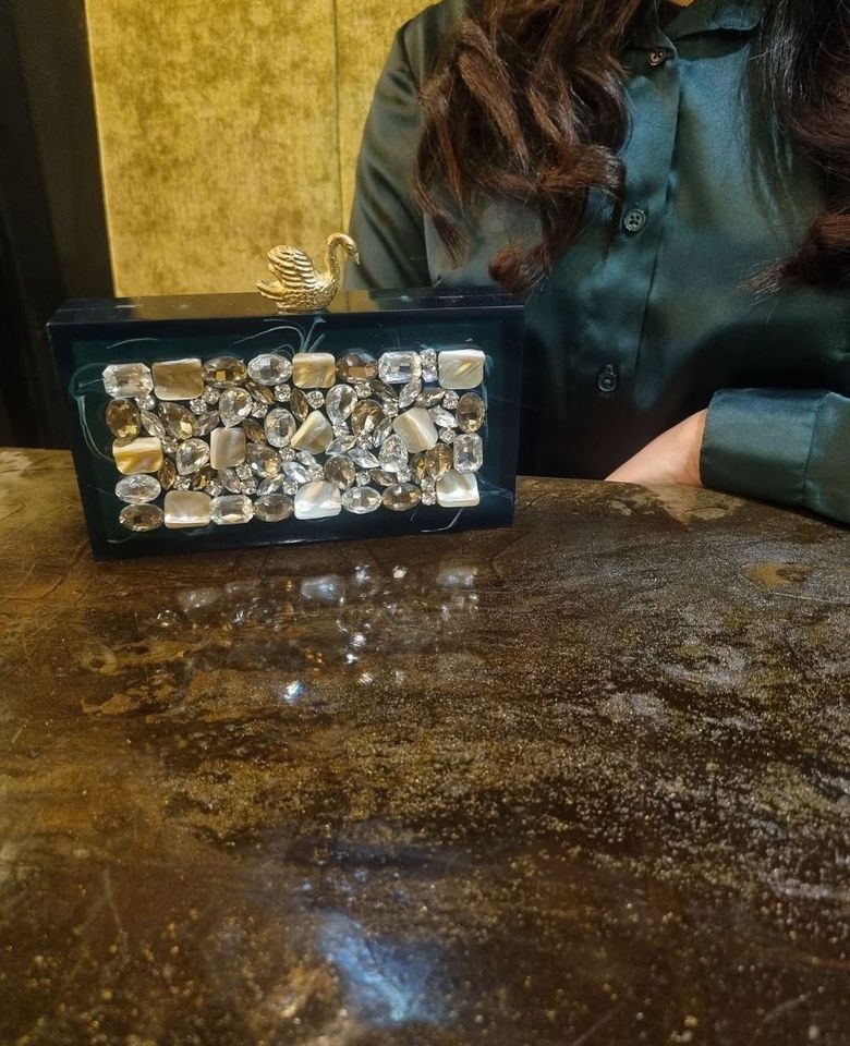 Floral Embellished Resin Clutch Bag Handcrafted Lotus Flower Clasp Design Elegant Bridesmaid Gift Comfortable Chains for Winter