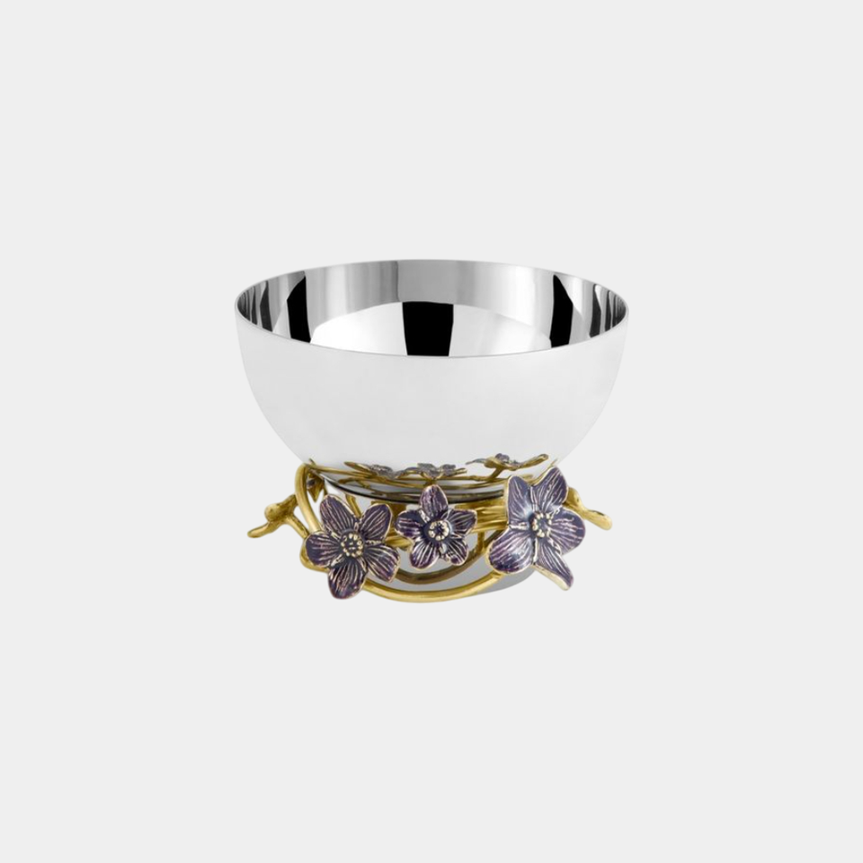 Handcrafted Flower Accent Dinnerware Serving Bowl Prime Quality Stainless Steel Decorative Bowl With Brass Accents For Sale