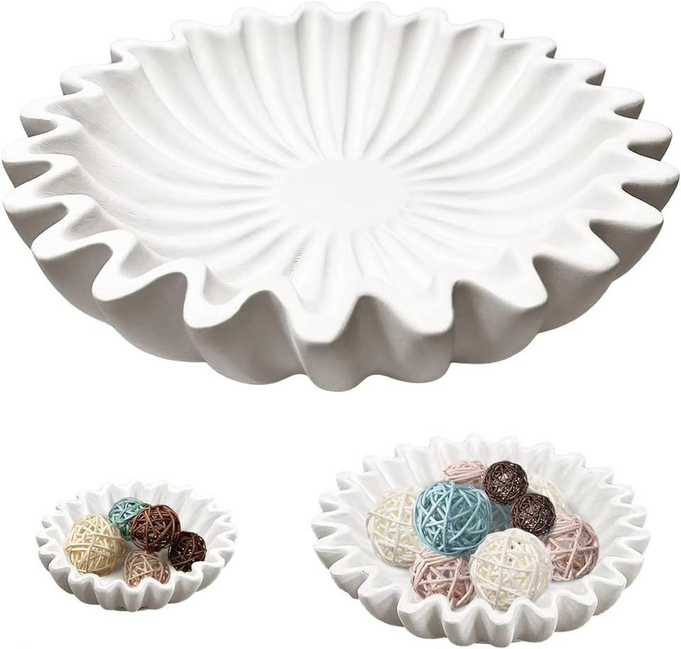 Handcrafted Flower Shape Ceramic Round Decorative Bowl Stylish Home Accent for Dining Room Kitchen and Modern Decor