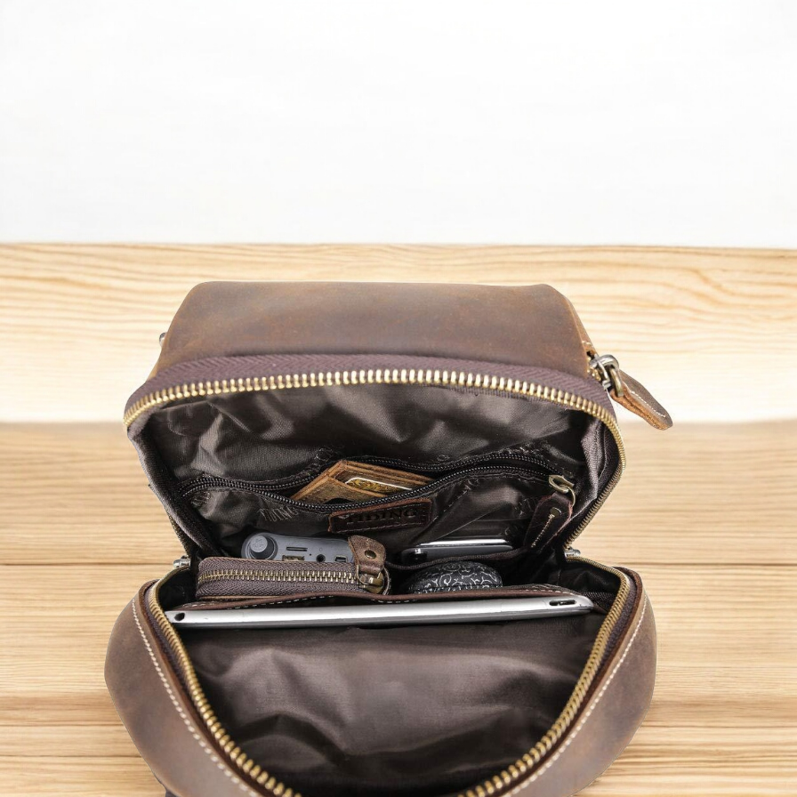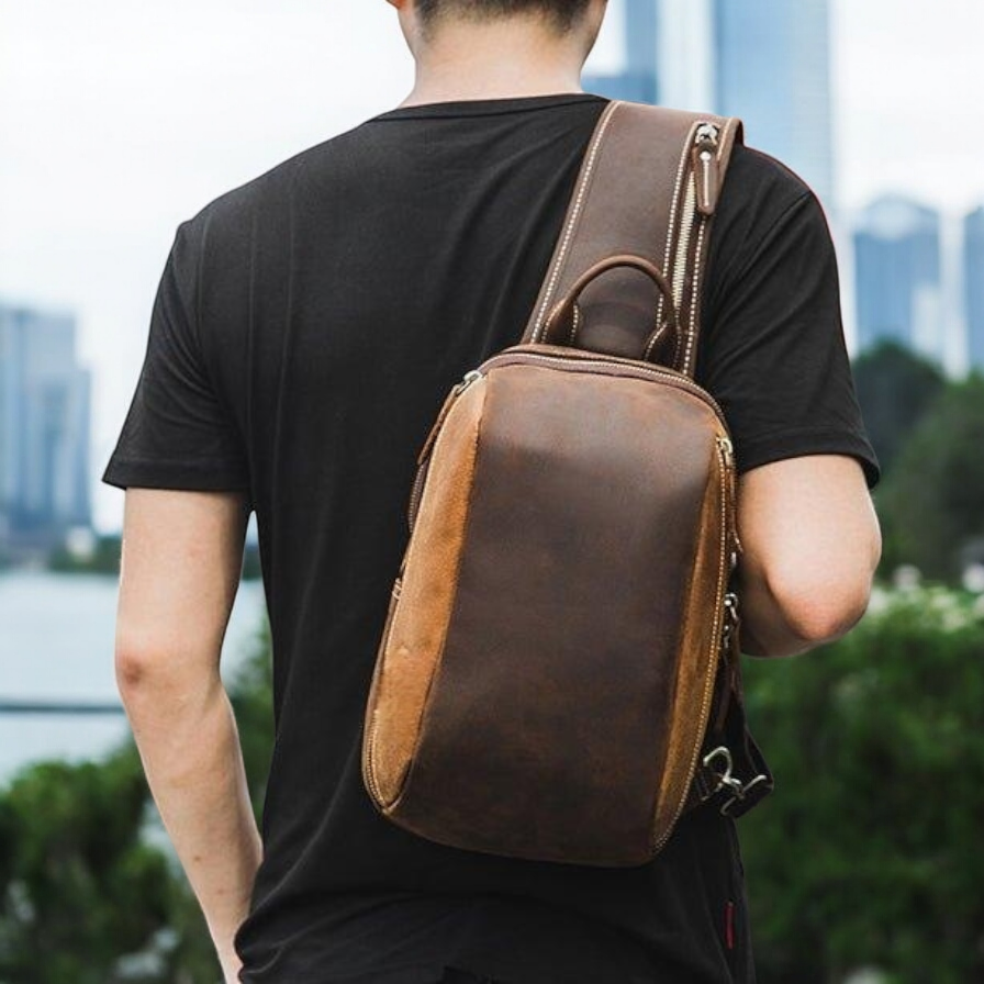 Handcrafted Full-Grain Leather Crossbody Chest Bag with Premium Stitching and Vintage Finish