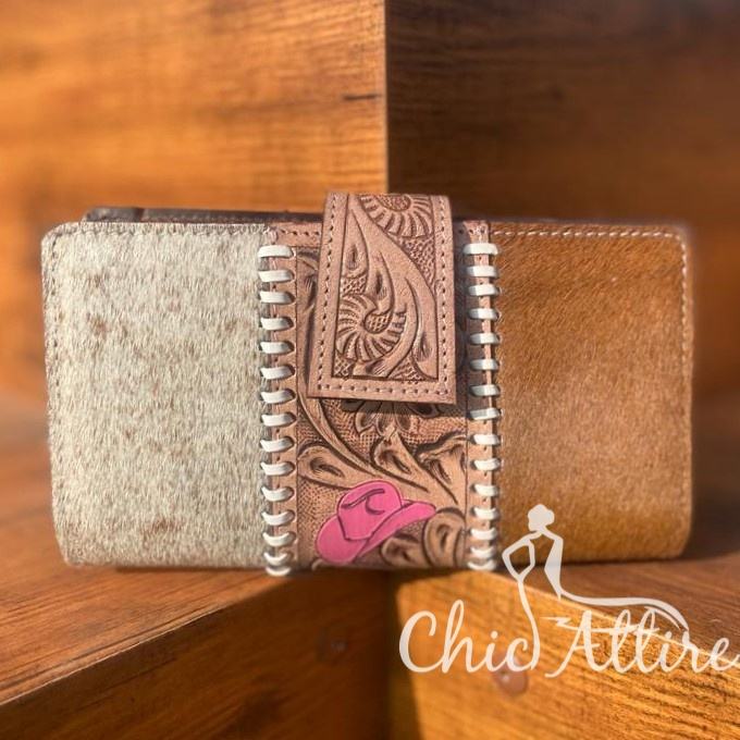 Product name:Trendy Tooled Fur Leather Pink Hat Wallets