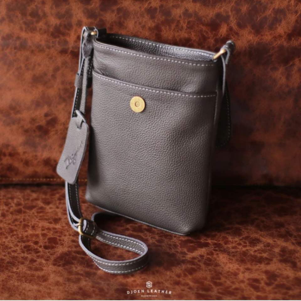Handcrafted Genuine Cowhide Leather Small Crossbody Phone Bag Minimalist Sling Pouch with Adjustable Strap