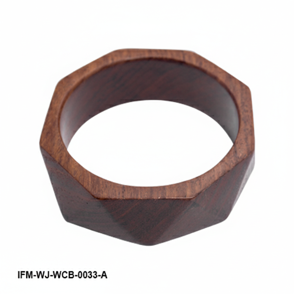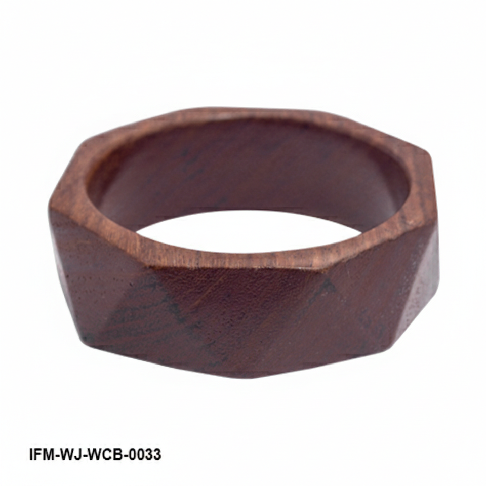 Handcrafted Geometric Wooden Bangle Bracelet Natural Dark Wood Hexagonal Chunky Statement Jewelry Boho Curved Wood Wristlet