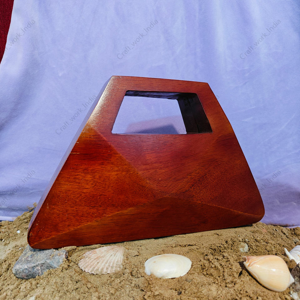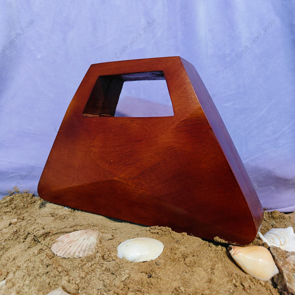 Handcrafted Geometric Wooden Clutch Bag with Cut Out Handle for Women Designer Evening Party Wedding Luxury Hard Case