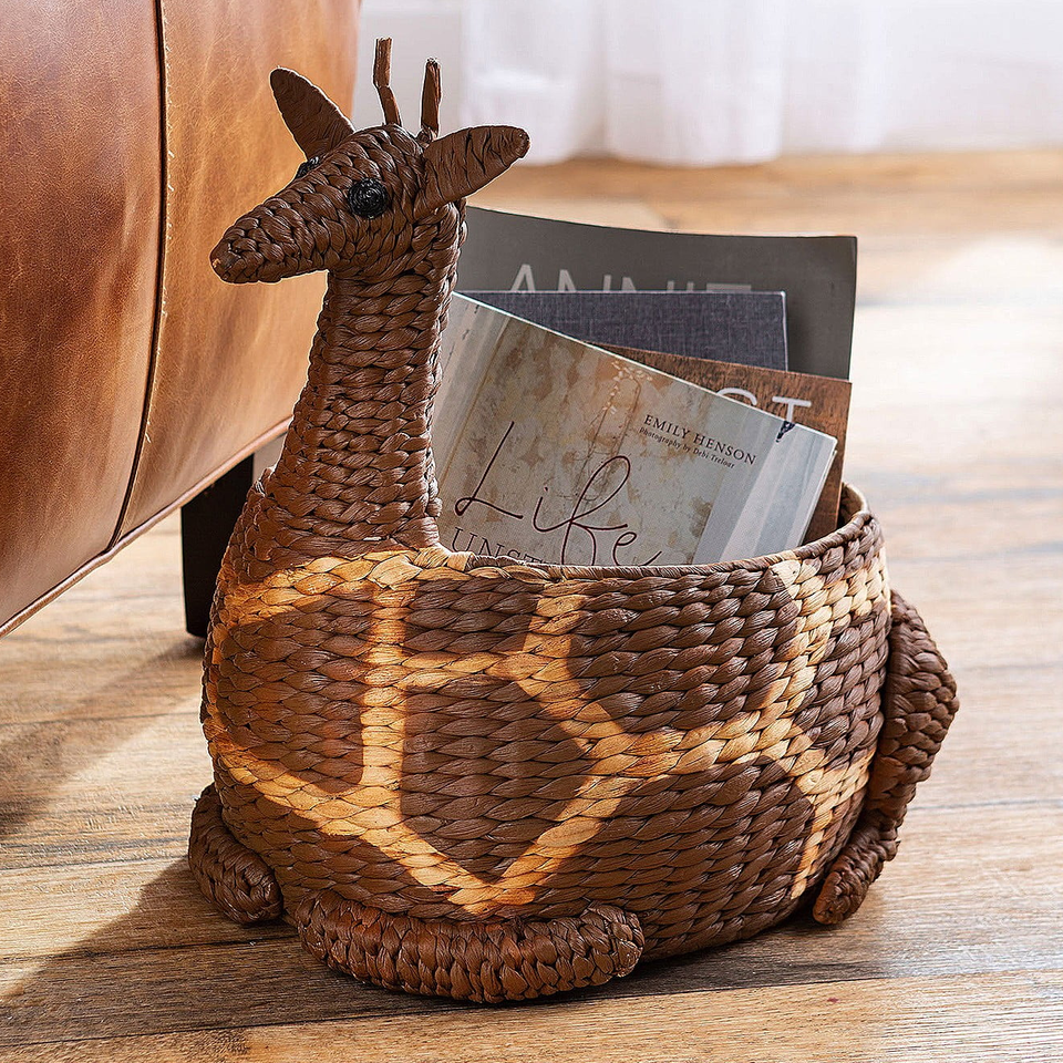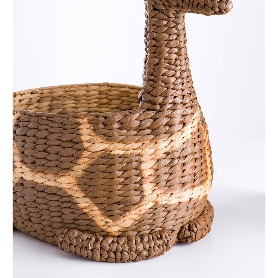 Handcrafted Giraffe-Shape Water Hyacinth Basket - Eco-Friendly Woven Storage Basket with Playful Animal Design for Kids Room