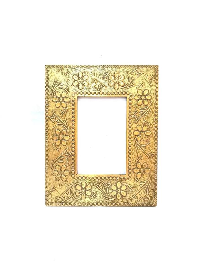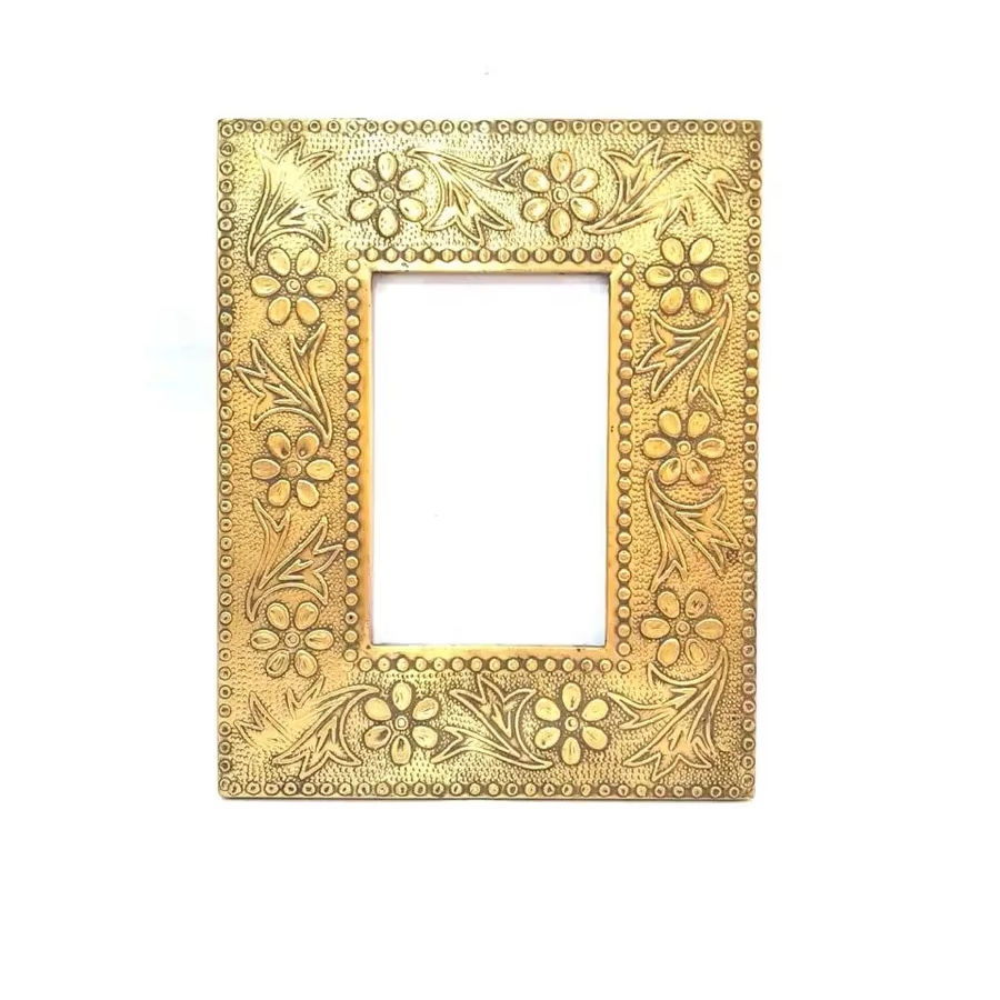 Handcrafted Gold Floral Engraved Metal Frame Stylish Classic Design Perfect for Elegant Home Decor or Special Occasions