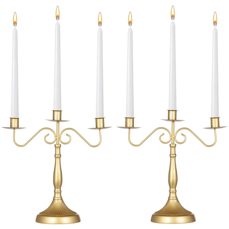 Handcrafted Gold Metal Candle Holder Set of Three Elegant Modern Pillar Candle Stands for Home Dining & Festive Decor