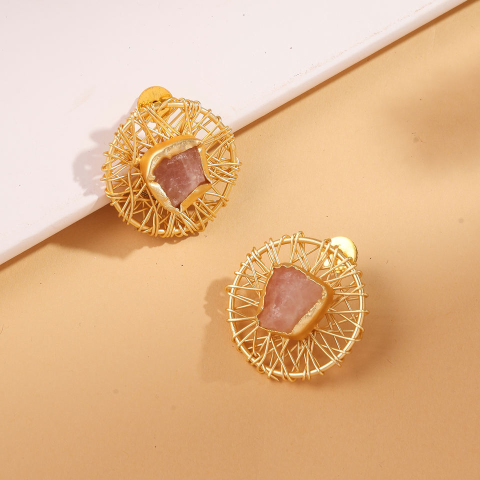 Handcrafted Gold Plated Alloy Ethnic Moon Shape Opal Stud Earrings for Women Party Occasion