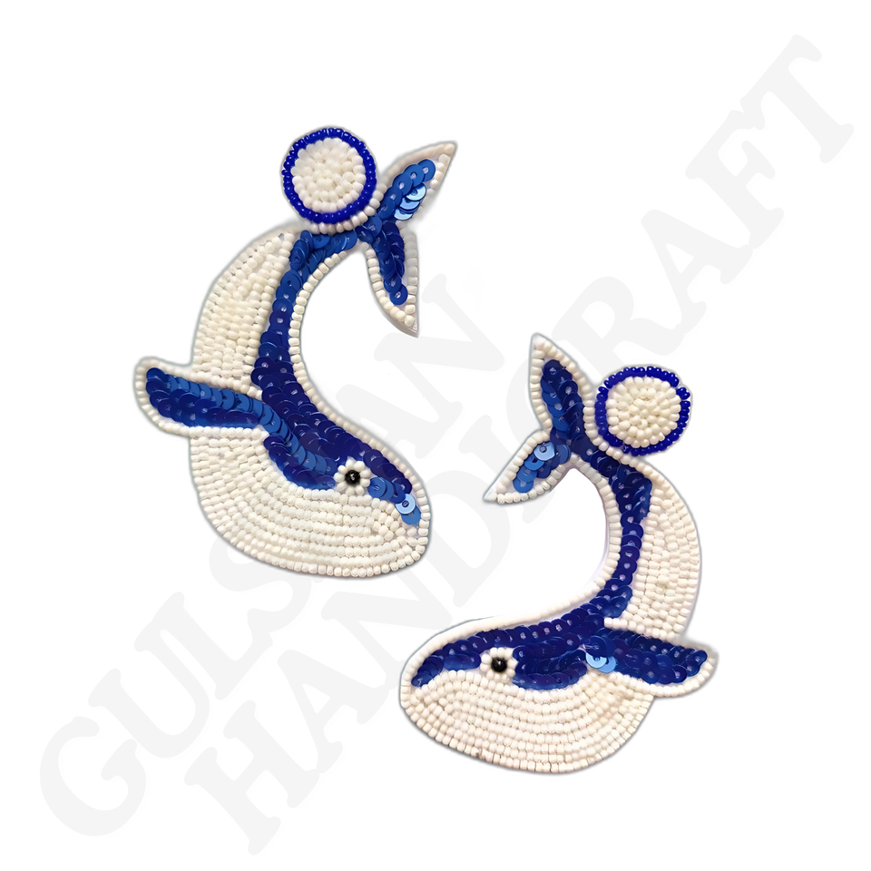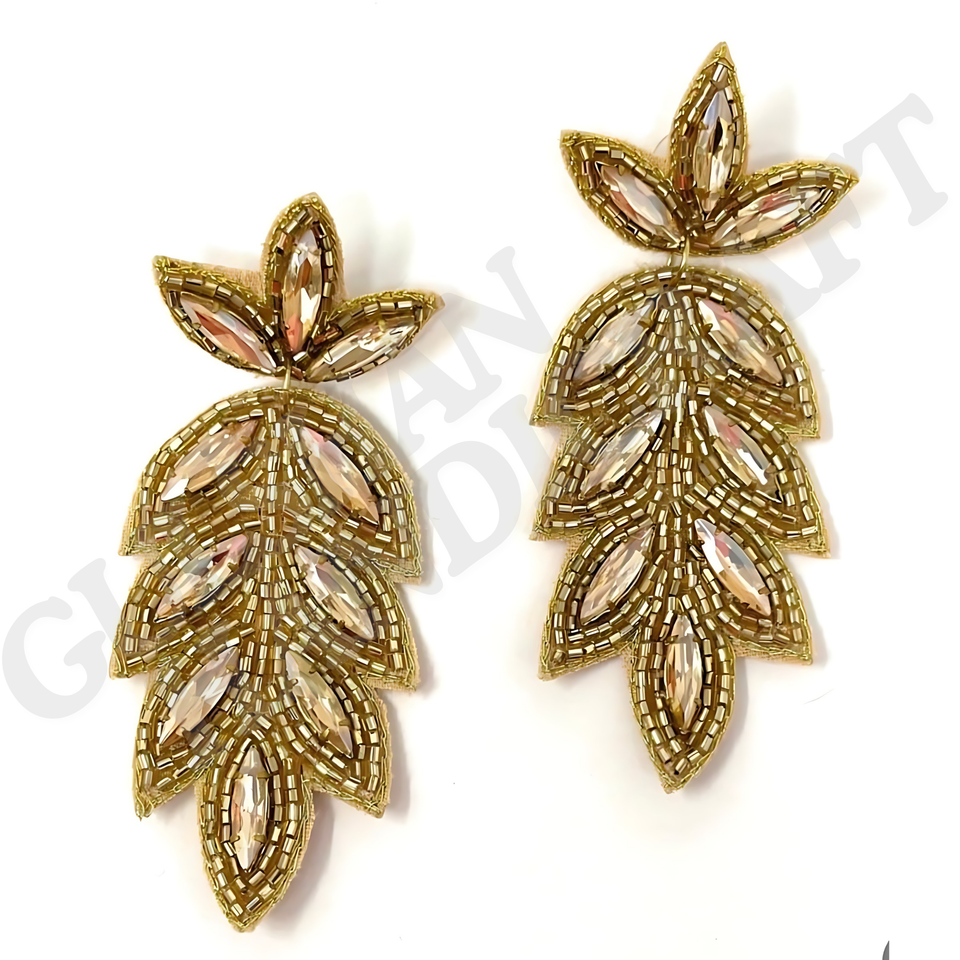 Keywords:Handcrafted earrings Gold and white embroidered jewelry