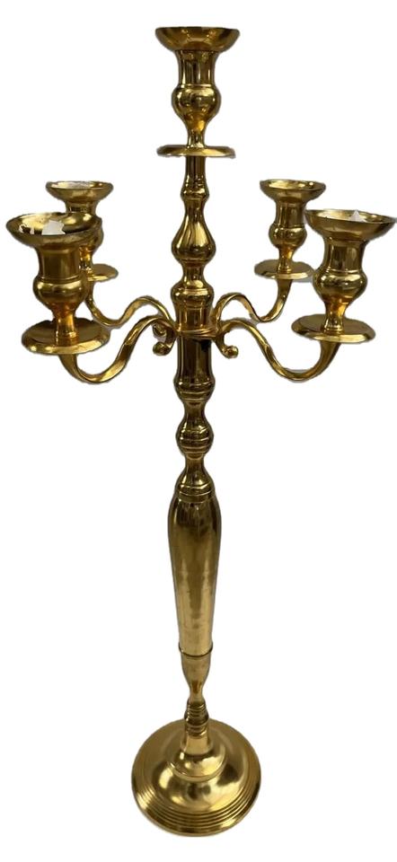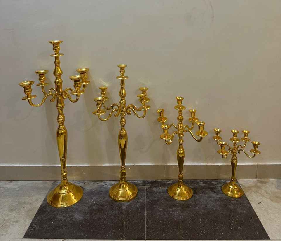 Handcrafted Gold and Silver Plated Aluminium Casted 5-Arm Candle Stand or Candelabra for Decoration