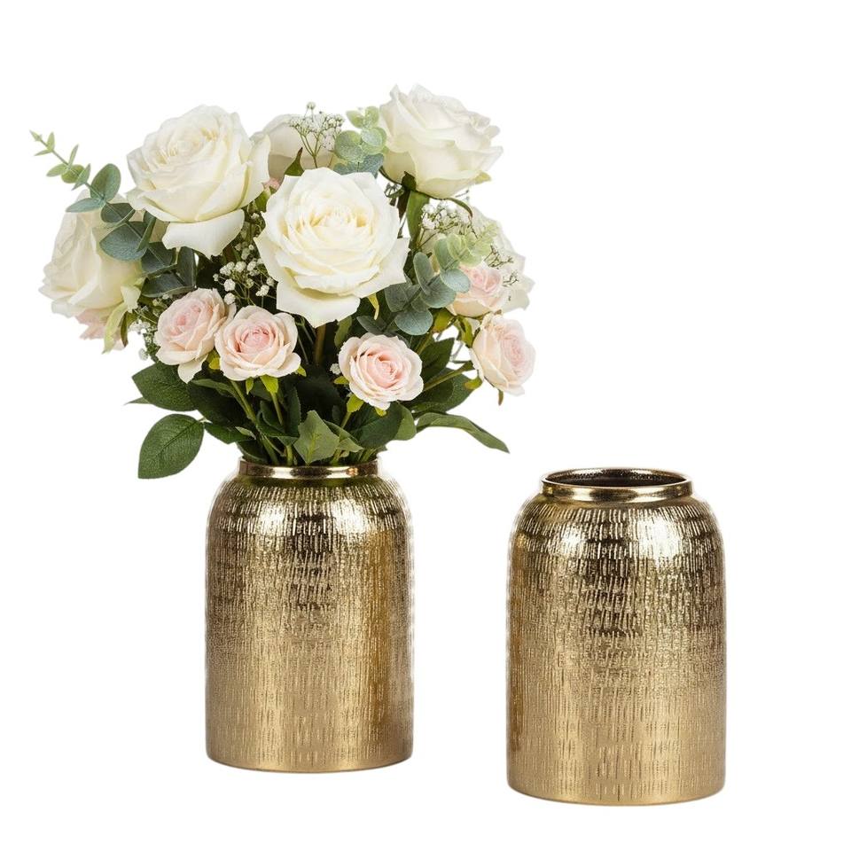 Handcrafted Golden Metal Flower Vase Set Of 2 Elegant Iron Tabletop Home Decor Vases For Home Living Room And Office Gifting