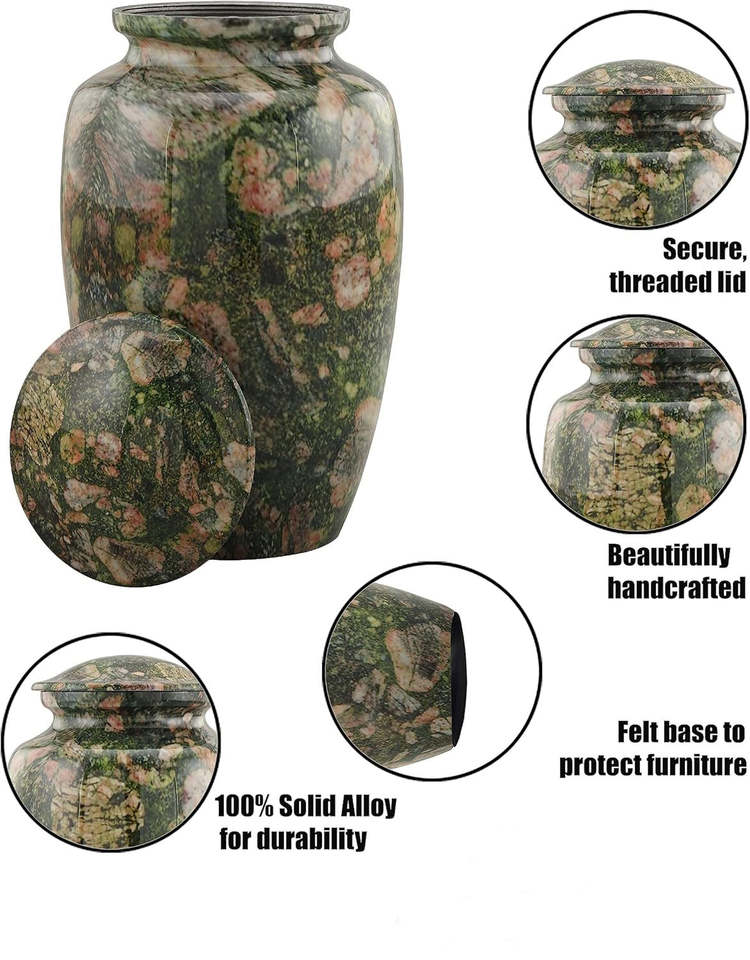 Handcrafted Green Marble Finish Metal Cremation Urn ADT Memorial Funeral Urn for Human & Pet Ashes up to 200 Lbs for Cats