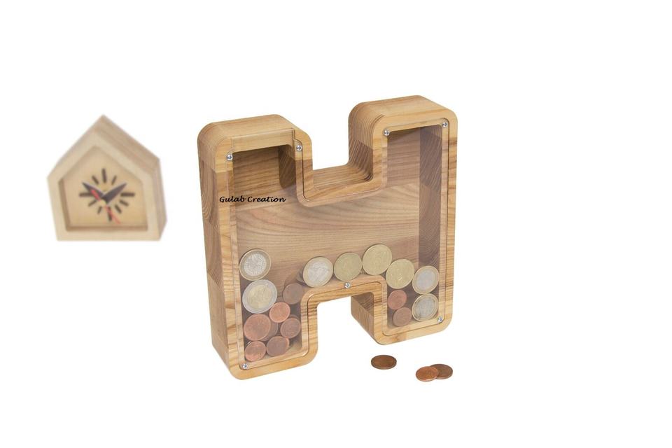 Handcrafted H Shape Wooden Money Bank Personalized Alphabet Letter Coin Box for Kids, Gifts, and Home Decor