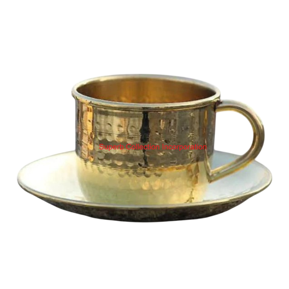Handcrafted Hammered Brass Cup And Saucer Set Traditional Golden Tea Coffee Serving Set Metal Drinkware For Home & Gifting