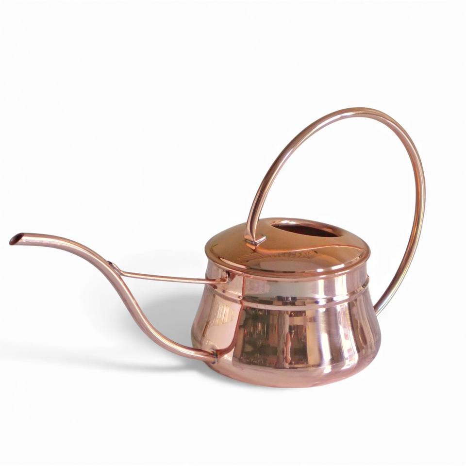 Handcrafted Hammered Copper Watering Can with Brass Spout and Artistic Curved Handle for Home Garden