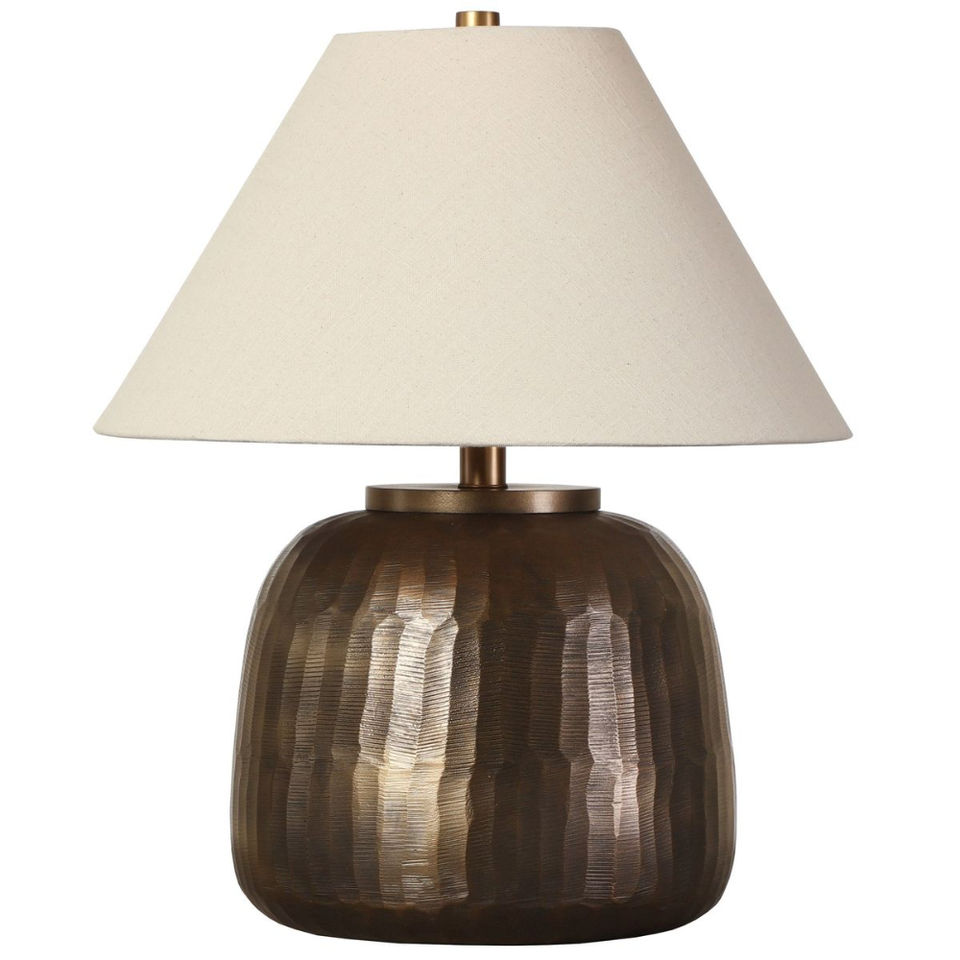 Handcrafted Hammered Table Lamp Antique Brass Finish Metal Base Modern Home Decor Linen Drum Shade Table Lamps In Best Price