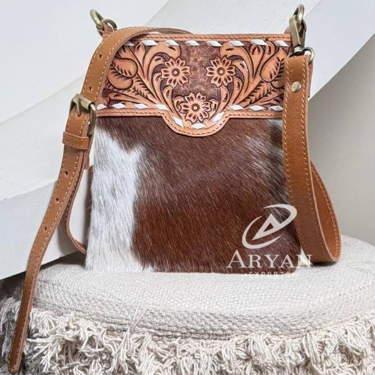 Handcrafted Designer Tooled Leather Shoulder Purse Mini Mobile Phone Bag for Women's Genuine Cowhide Leather Crossbody Handbags