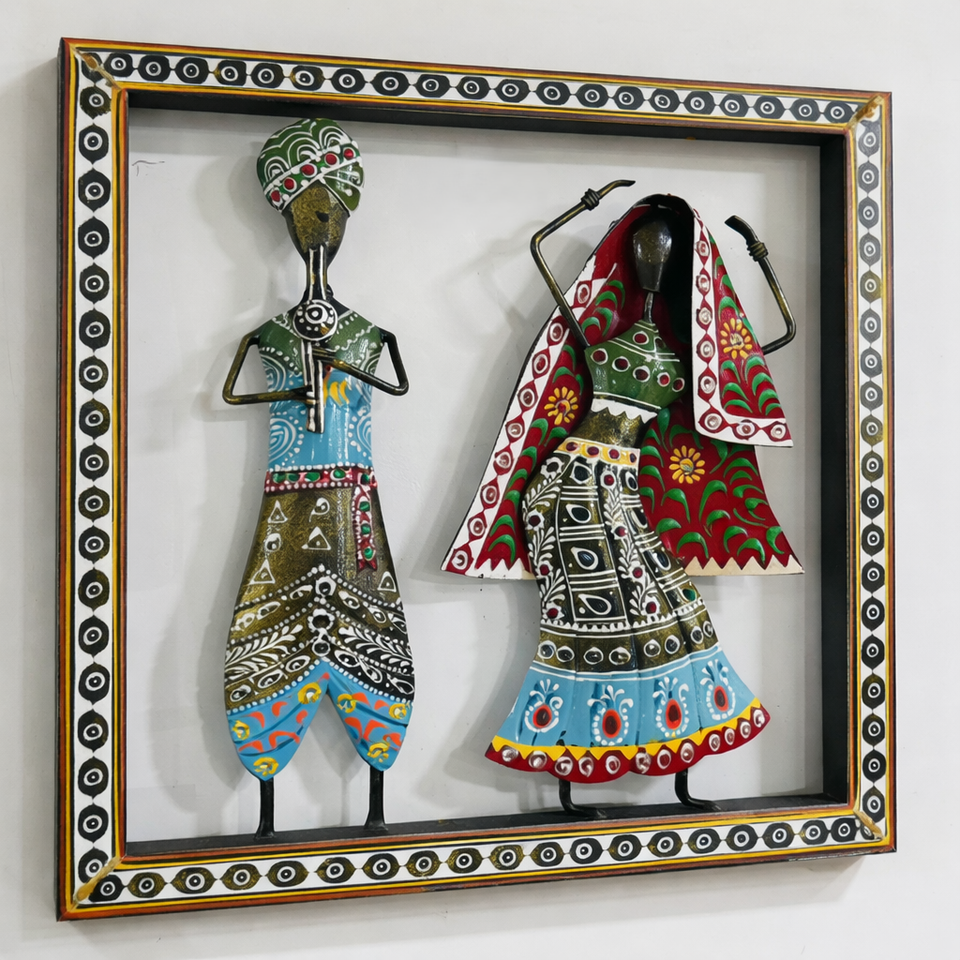 Handcrafted Hand-welded Metal Wall Art Eco-Friendly Art Deco Design Rustic Wooden Frame Hand-painted Enamel Finish Home