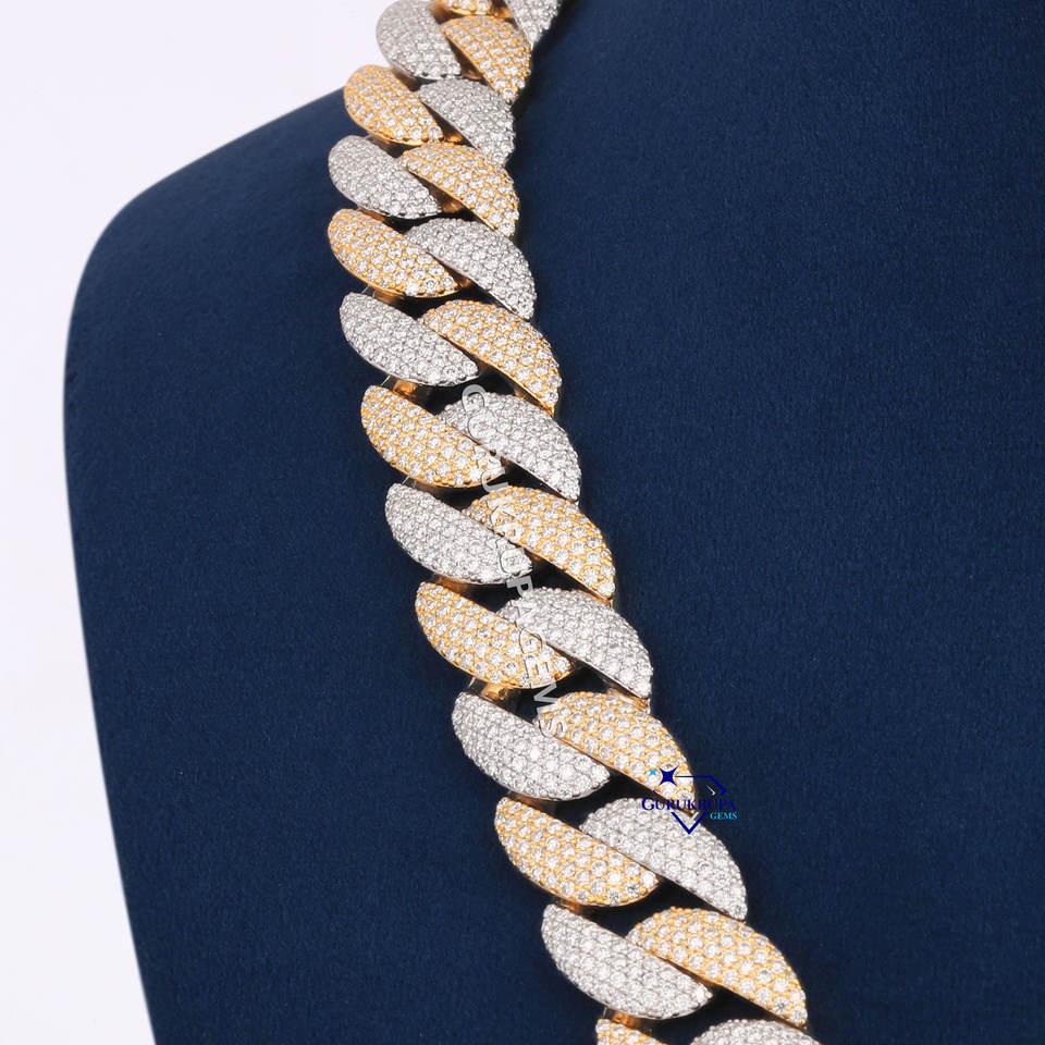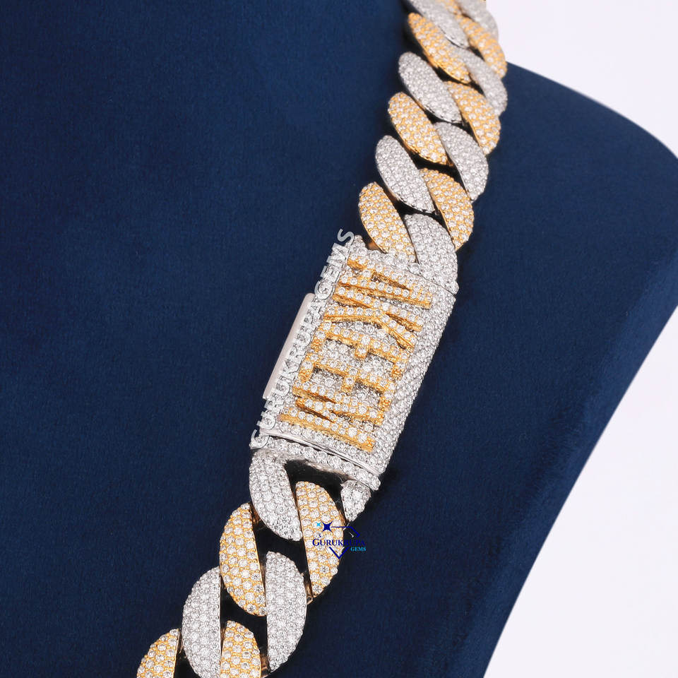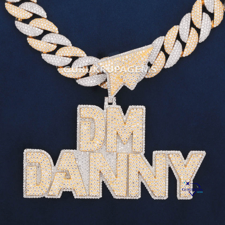 Handcrafted 925 Sterling Silver Lab Grown Diamond Pendant Iced Hip Hop Two Tone Chain Rhodium Custom Design Necklaces Set Gift