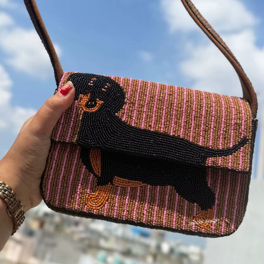 Handcrafted India-Made Designer Beaded Frame Evening Party Bag Shoulder Strap Zipper Magnetic Flap Closure Silk Cotton Lining