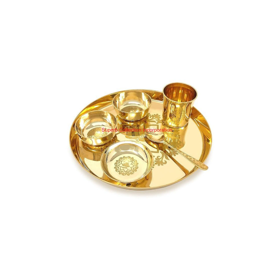 Handcrafted Indian Brass Thali Set Traditional Metal Dinnerware For Pooja Home And Restaurants Kitchenware Thali Set For Sale